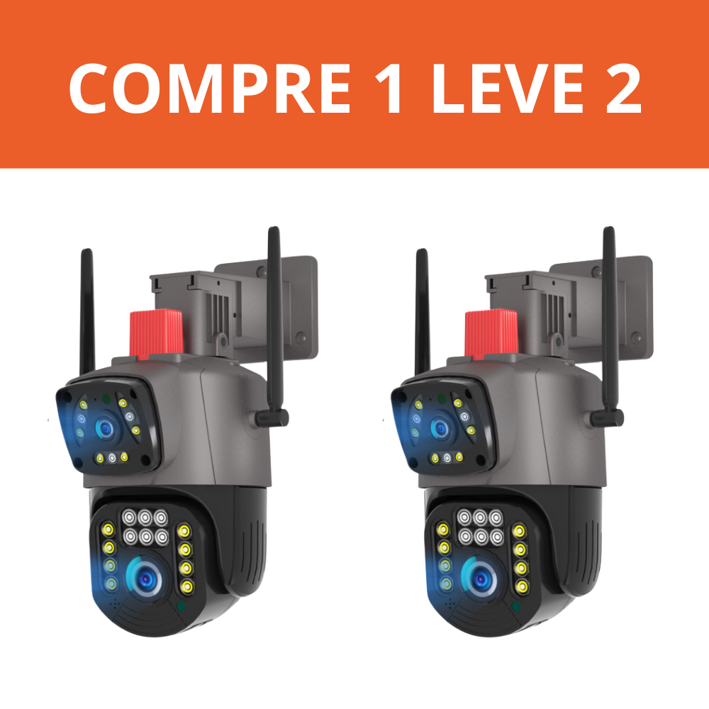 A Câmera Dupla 5G Wi-Fi Full HD 1080p é a solução definitiva pra quem quer vigiar casa, quintal ou comércio sem gastar uma fortuna. Ela rastreia sozinha quem se mexer na frente, grava com qualidade absurda e ainda deixa você conversar em tempo real com quem aparecer. Tudo pelo celular, de onde estiver.