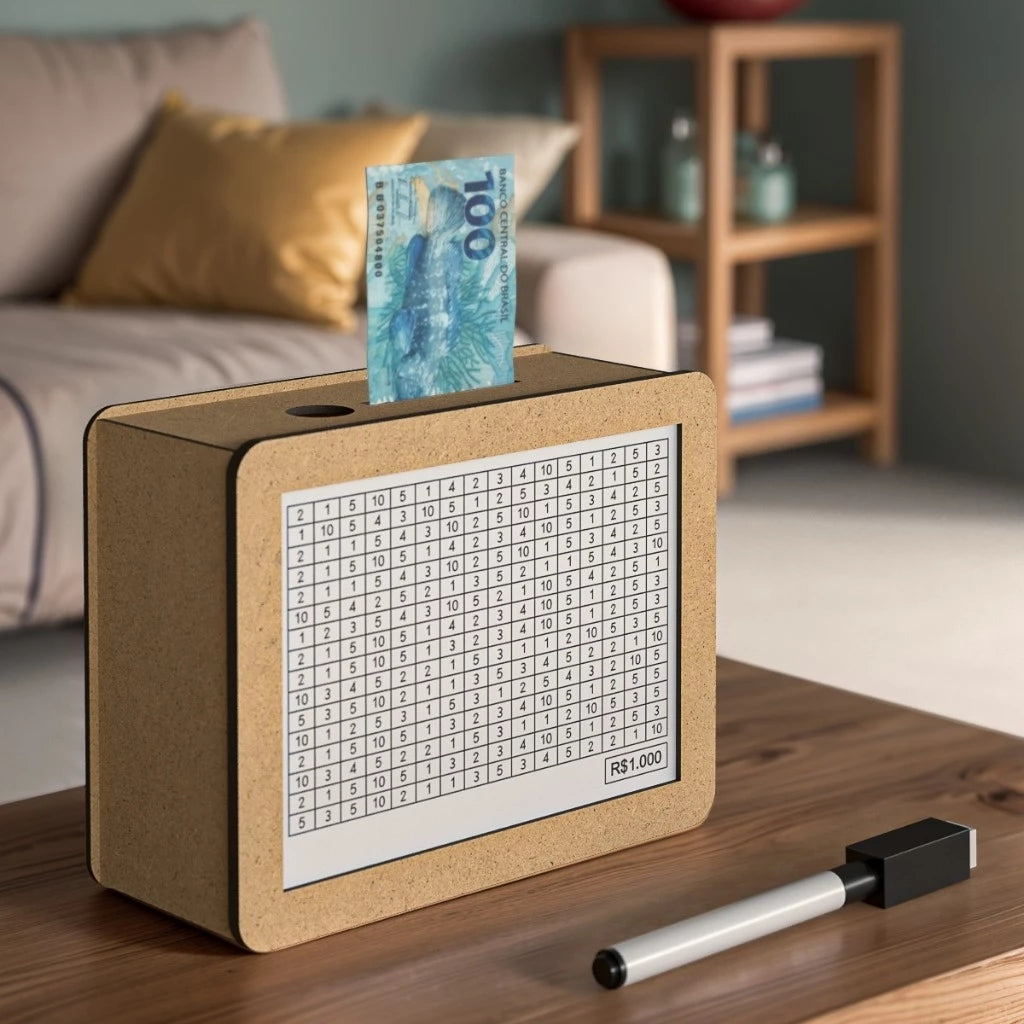 Seu design ajuda a manter o foco e estimula o hábito de guardar, transformando a economia em parte da rotina.