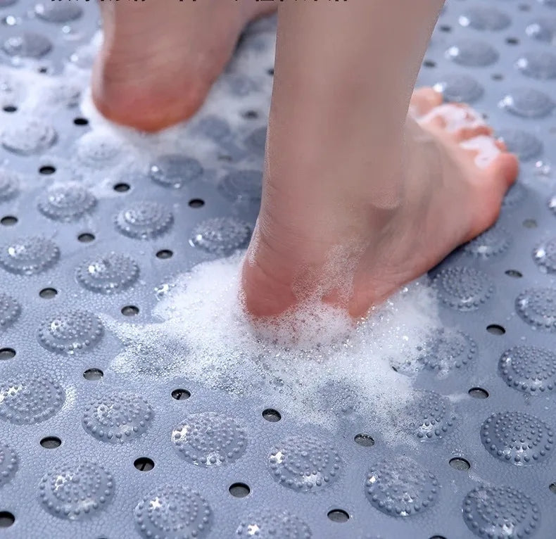 Com ventosas potentes na parte inferior, o tapete fixa-se firmemente à superfície, prevenindo escorregões e garantindo segurança durante o banho, ideal para toda a família.